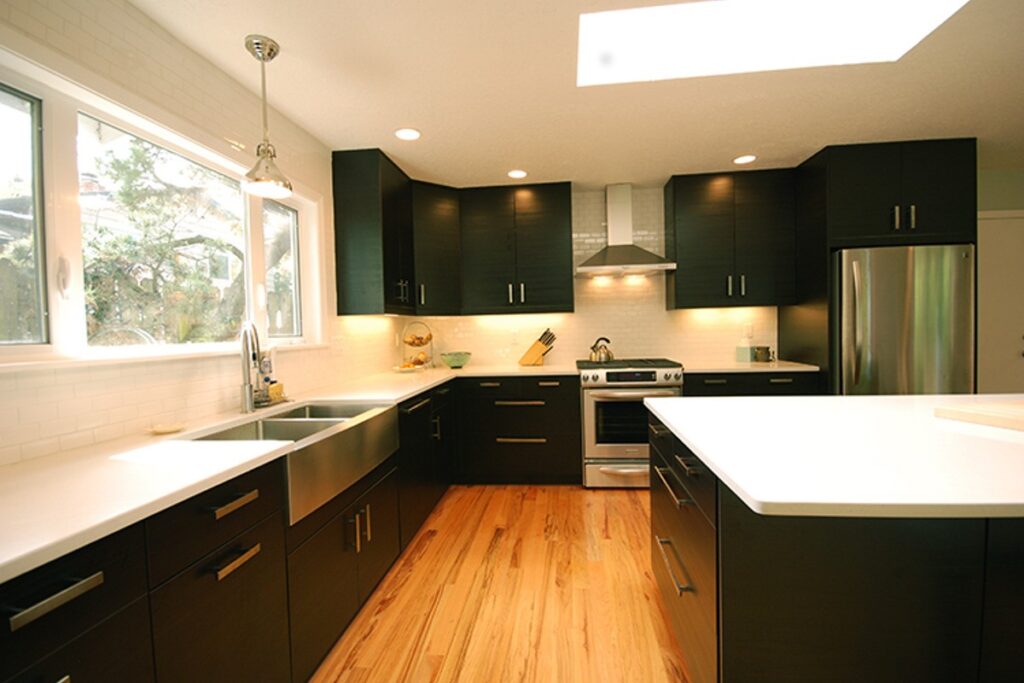 Full Kitchen Remodel where we opened up it up to natural light, added custom IKEA cabinets, and new stainless steel appliances.